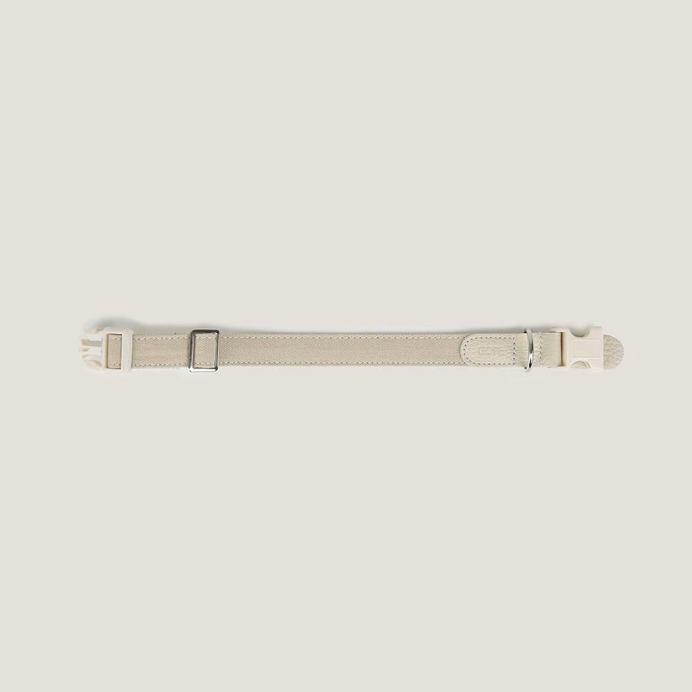 ナチュラルなベージュのキャンバスストラップ。