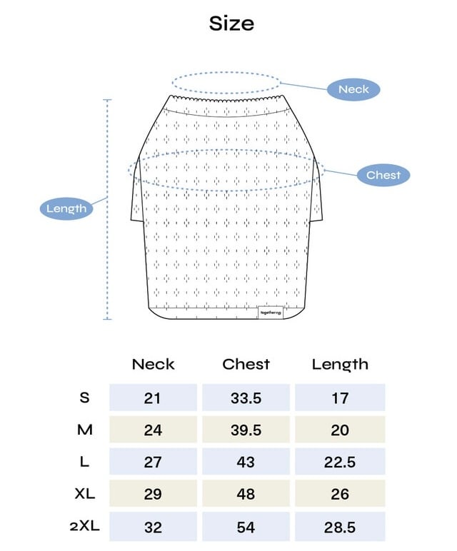 ※ 首まわり・胸まわり・着丈は下記サイズ表をご確認ください
